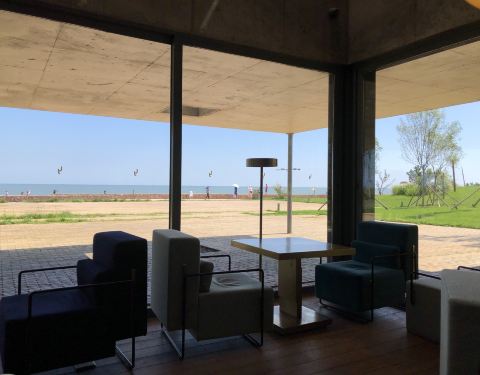 Restaurant y·sea是一家临海餐厅,设计富有现代感,通过宽阔的落地玻璃完美的展现了蔚蓝的海景。伴随着柔和的灯光、悦耳的海涛声,尽情享受美味的西餐。