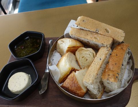海鲜饭无比正宗,赠送的面包调料就有两种,诚意十足,第二天的早餐差不多都带出来了,加柠檬水也很及...