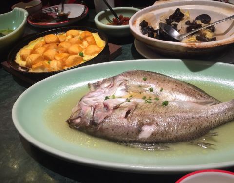 开在五角场的新白鹿,目前人气很高,目前招行有每满100元减7元的活动。新白鹿一贯的价格实惠,口味还不错,人气很旺。招牌的蛋黄鸡翅必点,香烤鲈鱼也不错,冰激凌烤布蕾,冰激凌还能再多点会更好吃。龙井虾仁不行,虾仁腥气了,菠萝牛柳调味甜甜的,干菜炒秋葵,东坡肉,话梅花生都挺实惠的。