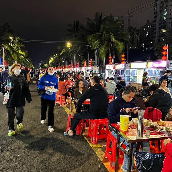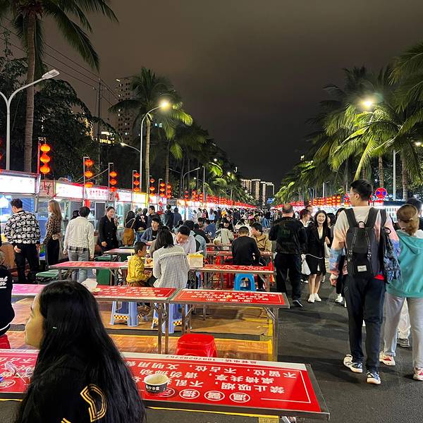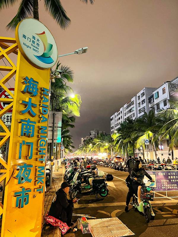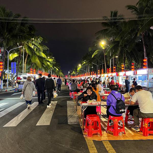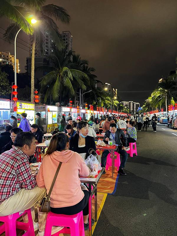 - 这封了一条大马路来作夜市,主要服务于海大学子,晚饭时间这看起来就像是海南大学的露天食堂