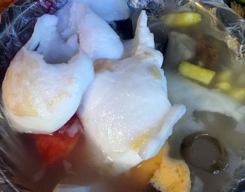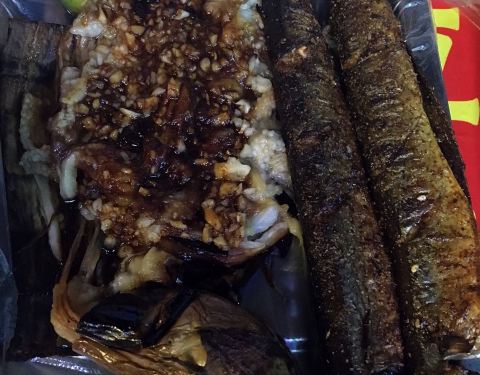 走到了南大门夜市,很多的学生在那里吃,我们点了糟粕醋,其实就是海草和一些说不上来的东西拌在一起,酸不溜秋 。10元打包的一份鸡屎藤小丸子5元,吃了一口再吃要吐了。