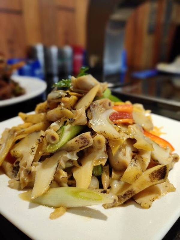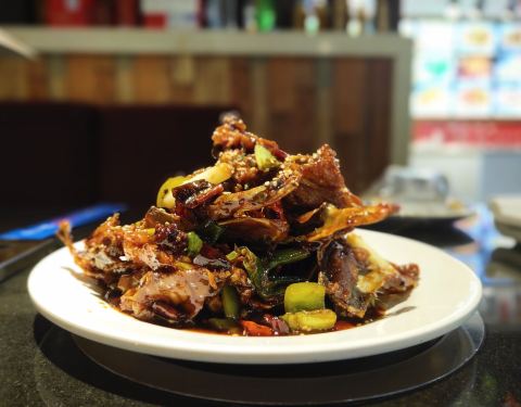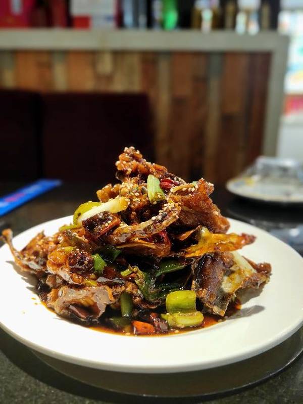 『老道海鲜烧烤』 ⭐ 除了大家都推荐的|烤鸟贝^和|烤海肠^[爱心] ⭐ 我还要墙推她家的|炒鸡架^,荣登我个人排名“大连街第一炒鸡架”[6][6][6] ⭐鸡架 可以做两个口味,酸甜和麻辣,墙推酸甜口,跟街上任何一家都不一样的酸甜[强] ⭐有点老式溜肉段外加糖醋里脊的混合口味,上桌又能闻到扑鼻的酸气,这酸气又像极了一盘正经儿的锅包肉的酸气, ⭐鸡架是提前大锅油炸过的,架子上的鸡肉已经炸的酥香,再在小灶上那么一炒,华丽丽的变身“大连街第一炒鸡架”![胜利] [服务]⭐⭐⭐⭐⭐正好坐在吧台旁边的座位,看着老板娘热情的迎来送往,亲切自然的就像自家人一样。