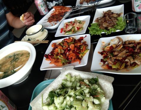 两百块还找两块的4-5人餐,去了三大一小,真是吃都吃不完哈哈。 叫做我们是去旅游的,不然肯定会打包带回家,旅游嘛只能违心的浪费了,大夏天带着食物还要去景点不方便。 烤大虾、烤面包片和热菜小河虾最喜欢吃了,其他没什么出彩,但是大连人民是不吃辣么?要中辣一点点都不辣。