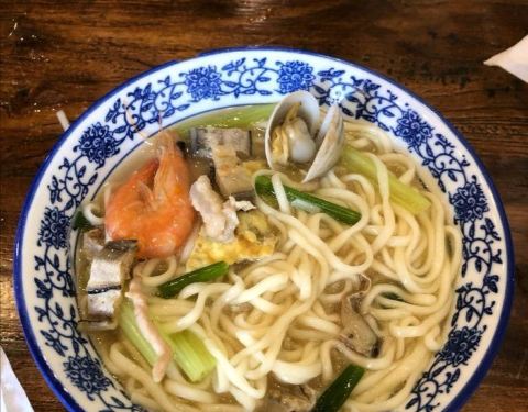 里面环境还算是可以的,虽然是小面馆,这样子的风格,但是墙壁上面很好的展示了这边的三鲜面的一些制作手法,还有一些文化图案,老板在这边也是比较勤快的,过来的时候人真的是不多,最多的时候也只是开了四桌子而已。 虽然外面比较冷,但是小面馆里面还是比较暖和,不过有人进出开了门没关就会有点冷风进来,下单之后,大约就等十分钟左右就可以吃上了。