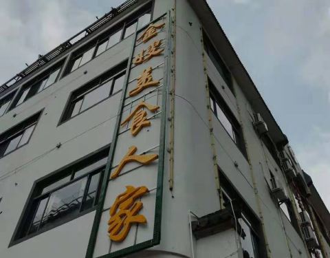 黄山之旅行续集篇黄山徽菜第一店《金嫂美食人家》 跟团旅游第三天安排在山脚下附近的一家美食餐厅吃中饭,哈哈,这餐可算是跟团游品尝最好的团餐喽。 地址:刚好就在黄山风景区附近的汤口镇上,高速路下来的路口处,(看到京东便利店边上)。 环境:环境很赞,玩、住、吃一体,大门进左手边上是住,往里还有包厢,整体很有黄山徽派装饰,墙壁上的灰瓦白墙图案,显示出黄山独有的特色,木制的桌椅,自驾游黄山可来此免去玩,吃,住的烦恼,一站到位的体验。 西红柿肉圆汤:酸酸甜甜,很开胃,让辛苦一天的旅程补充体力。 萝卜炖排骨:排骨不柴,挺嫩,萝卜软糥,不错的口感。 炒青菜:脆感当前,绿油油,咸度刚好。 包菜炒肉片:包菜口感很脆,肉片也滑嫩,咸香适口。 农家土鸭肉:肉爽滑嫩口,还不错。 大蒜炒肉:蒜最喜欢吃了,配肉炒更突出蒜的香味。 南瓜:很软糥,很甜。 鱼:鱼还可以,没啥土腥味,肉也很嫩。 汤:(茶笋排骨汤)(三鲜汤)等:汤挺清爽。