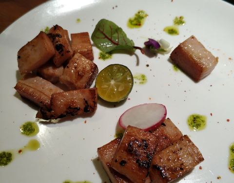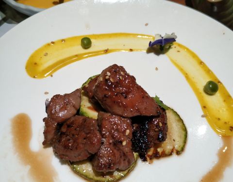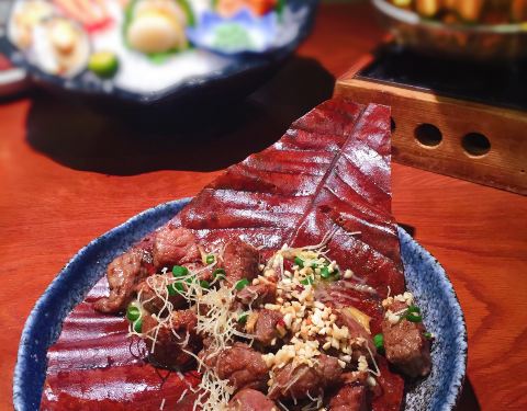 匠和风精致料理(世茂双子塔店) 位于世茂双子塔商场四楼,坐到沙坡尾站最近。 环境跟匠和风其它门店风格类似,整体色调比较暗,私密感比较强,适合情侣约会和小家庭聚餐。 刺身种类非常多,光鰤鱼就有厚切和薄造两种,口感也确实明显不同。冰镇鲍鱼和海螺都很新鲜,吃起来也特别脆。帆立贝入口即化, 象拔蚌也很鲜美。 「和风熏牛肉」半生牛肉脂肪分布均匀,而且切得特别薄,吃起来很多汁,调味方面也很出色。 「牛肉朴叶烧」这道的牛肉肉质特别扎实,朴叶散发着特别诱人的香气,吃完真是唇齿留香。 「奶酪蟹宝」奶酪用量大,味道十分浓郁,令人感到大写的满足。蟹肉细腻,入口非常顺滑。 「梨香铁板鹅肝」鹅肝脂肪饱满,嘴里爆出来的感觉特别棒,但是不会腻哦。 还是传统地用纸笔点单,但是全程下来都没有点漏或者上漏菜。上菜速度非常迅速,这样吃自助真的太愉快了。