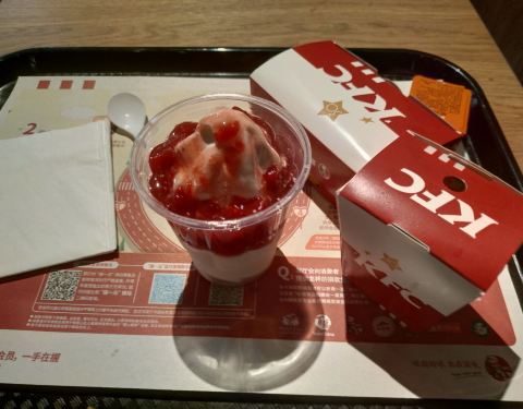 ...面的肯德基成了最热门的地方,点个餐等了十几分钟才拿到,就两杯新地,真不划算,应该多点一些好吃的