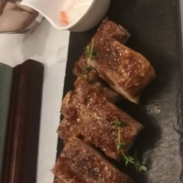 陈醋西沙红海蜇第一眼看中,不错,下面垫的黄瓜也很好吃 炭烧海南羊排不错.肥博相间,可以接受