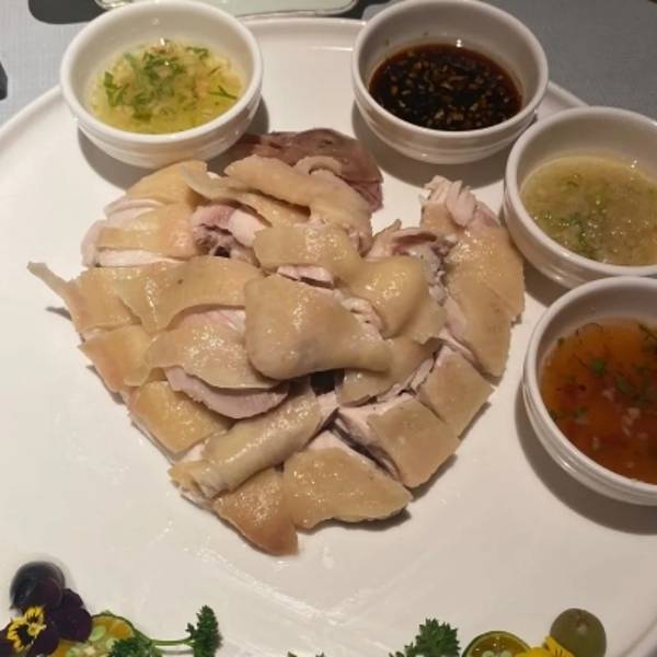 可能我吃的鸡太少了,第一次吃正宗海南鸡,味道是惊艳的,点了半只海南鸡,上来的摆盘让人舒服,而且调味蘸料味道有4个种类,东南亚风味的酸辣,中国味的沙姜,酱油。
