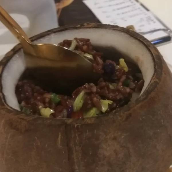 椰子饭椰子底很硬上面的糯米饭是鲜甜的但是中规中矩