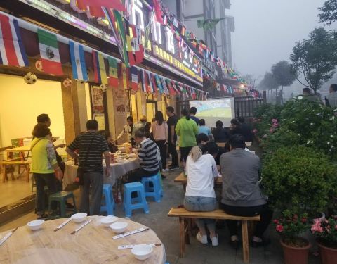 终于吃到了朋友推荐的黑山方竹鸡!对于一个假球迷来说,看球的氛围很重要!安逸!火爆抓钱爪黑好吃!又香又辣,回味带点甜,很不错!鸡爪是卤过的!烤肉串霸道,就是烤得太慢了,老板在那里很有耐心的烤,看得好...