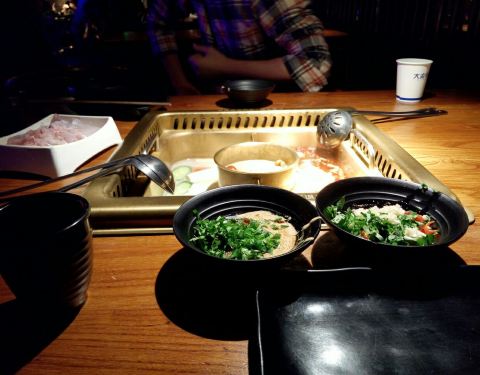 ...滑、八爪鱼、牛肉、肥牛、娃娃菜、甜虾,味道还不错,就是价格贵了些,两个人吃了三百多,料不怎么足