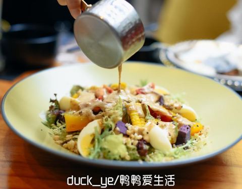 #鸭鸭旅食记#位于鹭江道新领荟广场摇滚广场,饮品5元起,正菜15元起!简直超划算!推荐:摇滚有机蔬菜沙拉、香草烤羊排、巴戈利亚猪肘。轻食西餐都有!性价比极高!