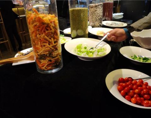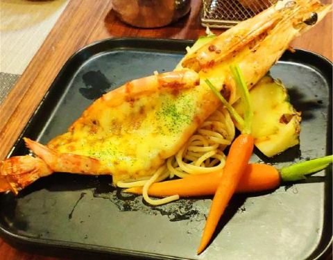位于轮渡和平码头的摇滚友,工业化的装修,显得相当的时尚,在这里用餐,很是舒服。 自助区的沙拉 水果品质不错,新鲜而且很甜,配上特调的沙拉酱,很棒的轻食。 饮品 现磨五谷杂粮,芋头的香气扑鼻,当然,你也可以选上一杯咖啡。 花香芝士焗大斑节 新鲜的大大斑节虾,新鲜的虾肉的极为鲜嫩,加上热腾腾的,拉起的芝士, 沙朗拼比目鱼 大大块的比目鱼,煎得颜色金黄,不油腻。配上沙朗,享受牛肉与牛肉的味道。 法式香草羊排 羊排很嫩而且多汁,没有多少膻味,嫩。 香煎金枪鱼 金枪鱼肉质鲜嫩,入口即溶,外酥里嫩的感觉,实在让人难以抵抗如此美味。 牛小排 肉质嫩滑的口感,饱满多汁。将各种香味的汁液和肉香在口腔中融为一体,享受着相互水乳交融的极致口感。 节瓜鲜虾意面 鲜虾,配上碧绿的节瓜,那q弹的意面,简直是让人停不下口。