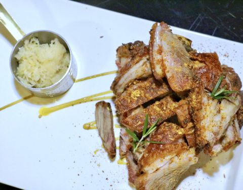 摇滚水果QUEEN餐厅是会多次来的餐厅,不但因为位置好,而且价格也是超平价的,每次看到菜单都感觉超惊讶,饮品5元起,沙拉19元起,德式烤猪手79,羊排79…… 去年金砖就用的是他们家的果汁,当然不容错过,来上一杯,最爱的就是玉米核桃。 摇滚蔬菜沙拉就如其名一样,在瓶中,不停的翻滚后倒入盘中,加有坚果的沙拉,口感非常丰富,而且清爽怡人。 美式梅花猪排59一份,不论老人和孩子都可以一试的扒类,非常的嫩。 香辣诱惑、烤猪手都非常不错,而且实惠又好吃