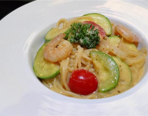 ...节瓜鲜虾意面,作为面条主食控,混合着肉酱还有jieg节瓜鲜虾的意面都令人欢喜,意面够入味够Q弹