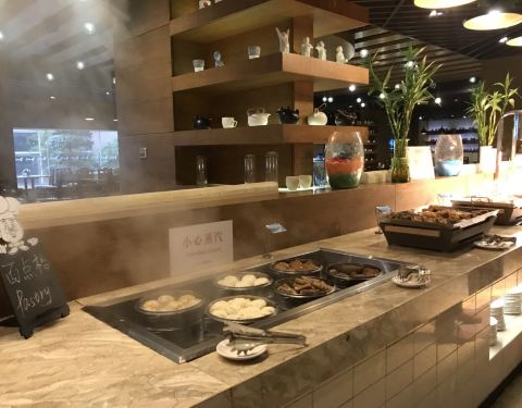远洲国际酒店的自助餐,早中晚皆有提供。对住店客人来说,晚餐84元/位,包含中、西餐。每桌有一份小火锅,可自取羊肉、鱼丸来涮。每位也可取一份木瓜炖雪蛤。