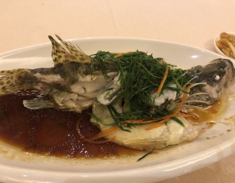 中餐厅叫聚仕轩,远洲酒店进门右手边,很多来庐山的游客住在这里。 中餐厅环境很好,主打各种河鲜江鲜,白鱼是一大特色,还有野猪肚。我一个人来,只点了一条清蒸鳜鱼和一个芦蒿炒腊肉,吃的很好。