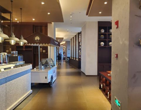 南京景枫万豪酒店的餐厅在酒店五楼,早餐是6点半就开始,7点过一点过来,餐厅人不多,8点吃完的时候基本都满座了,酒店自助早餐都差不多,菜品丰富,味道都还可以,牛角包很好吃,培根煎的也不错。
