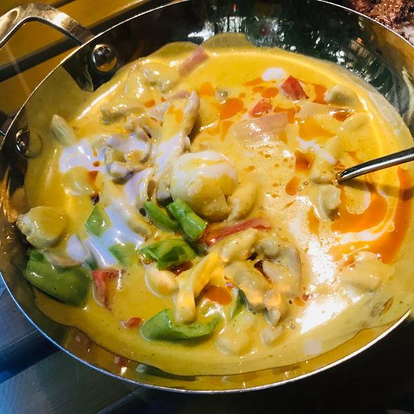 ...咖喱味不是特别的浓,反而奶香味特别的重,鸡肉滑滑的非常嫩,如果喜欢偏甜口感的,会特别喜欢这道菜