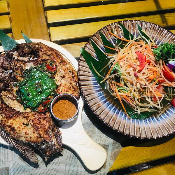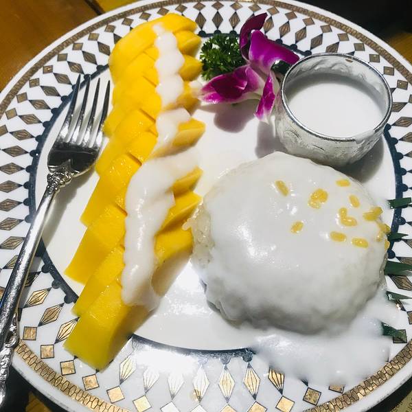 本来要带她俩去吃芒果糯米饭,结果出门之后,看不懂导航,哈哈哈。地图显示已经到了,原地转了好几圈,怎么都找不到,于是就来了这家喃公主,也是有小惊喜的哦~首先装修风格就很傣式,超级喜欢店里的很多小摆件,非常的有特色。我们到的时候人已经坐满了,生意特别的好。这个凉拌木瓜丝就不推荐了,感觉不是很新鲜的样子,木瓜丝一点都不爽口。这个香茅草烤鱼一定要点,鱼肉很嫩也没有什么刺,关键是那个绿叶子里包的调料,也不知道是什么,真的好好吃,鱼肉一定要和那个调料一起吃,太香了。泰式咖喱鸡,咖喱味不是特别的浓,反而奶香味特别的重,鸡肉滑滑的非常嫩,如果喜欢偏甜口感的,会特别喜欢这道菜。芒果糯米饭,会有一点甜的发腻。上面淋得酱汁味道有非常浓郁的椰奶香味,一块芒果搭配一口米饭一起吃下去,口感糯糯的又有点弹牙,第一口会很惊艳,但是吃多了会有一点点腻。