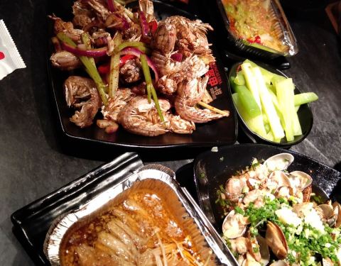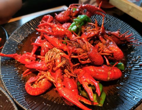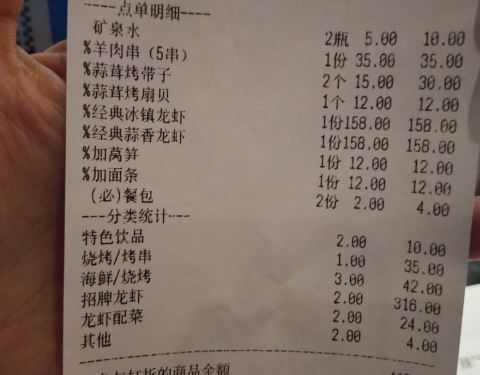 网红的小龙虾店,中等规模装修带点夜店腔调。接待很热情引领就坐倒上茶水,并送上围兜、手机套等用品,餐具包3元一位。点菜扫码除了各种口味的小龙虾外还有凉菜、烧烤、主食、配菜、饮品等。 下单后店员会...