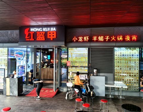 红盔甲 1)店面位置: 位于创智天地靠近迪卡侬的位置,江湾体育场站13号口。 2)店面特色: 主营小龙虾、蟹料理、海鲜、羊蝎子火锅为主的连锁主题餐厅。 招牌有椒盐濑尿虾、 经典咸蛋黄龙虾、经典秘制龙虾 、 羊...