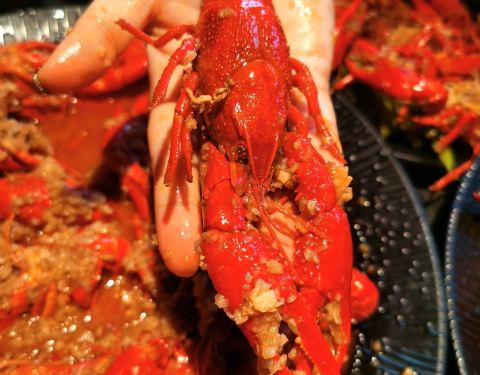 红盔甲在小龙虾饭店里也算是很出名的店了。 头一次的冰镇小龙虾就是在他们家吃的了,不过我其实并不是很喜欢吃冰镇,小龙虾我就喜欢吃重口。 五角场店生意很好,我们等了20分钟位子吧,一晚上换了一次桌子点了三次单,对小龙虾也真是唉了,钱包都不管不顾了。