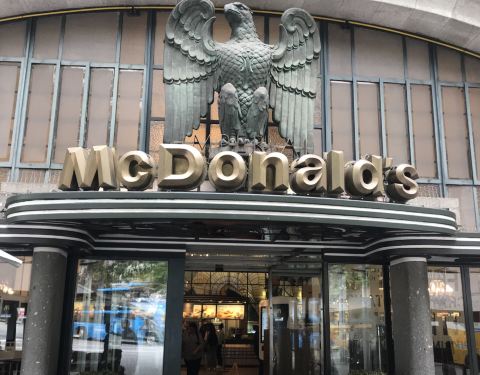 号称全球最美麦当劳之一,位于自由广场附近,早上散步走过来的非常醒目,门口的标志很明显又霸气外露,走进去还有水晶吊灯和墙壁上的玻璃窗花非常有艺术气息,一下子感觉吃个快餐也是个享受,当然麦叔叔的味道还...