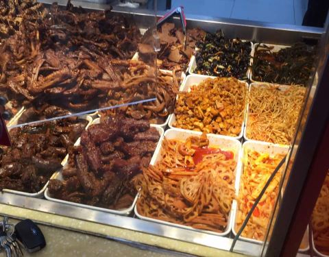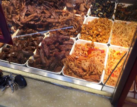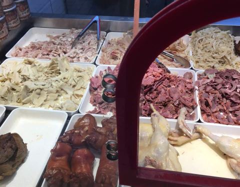 主要经营鸡、鸭货和猪耳朵、牛肉、牛蹄筋等熟食。其中夫妻肺片最好吃啦。里面有牛蹄筋、牛肉片、猪耳丝等主料和花生米、香菜等配料一起拌。口感爽脆,麻辣香,口口都是肉。百味鸡是招牌,味道鲜甜,鸡肉新鲜有弹性,多汁。鸡骨可以做汤熬过加菜叶,也挺好吃的。鸭锁骨有点辣,肉也挺多的。