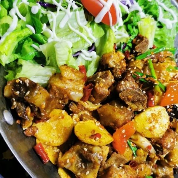 - 惊艳的味道,又勾起食欲来了,店家还很贴心得送了道蔬菜沙拉,桂花酿正和我们微醺的口味,喝了两小盅...