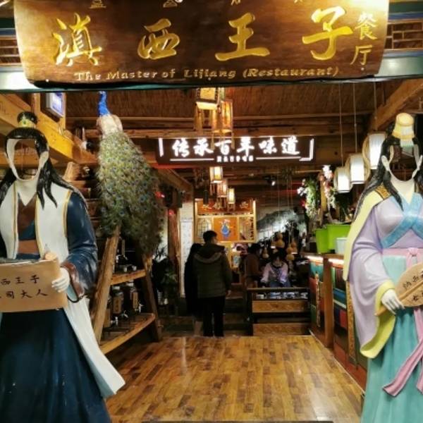 餐厅位于丽江古城南门白龙广场入口附近,离木府150米,位置很好,打车也很方便。经过这条古街,就被“滇西王子”这个招牌所吸引,门口还有两个拿着书的纳西族人雕像。进入餐厅,整体环境非常典雅复古,是纳西族的...