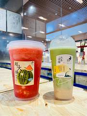 感觉放糖了,好甜!有爆珠马蹄、茶冻,唯独没有西瓜块,全打碎了!一升喝下去!好爽!