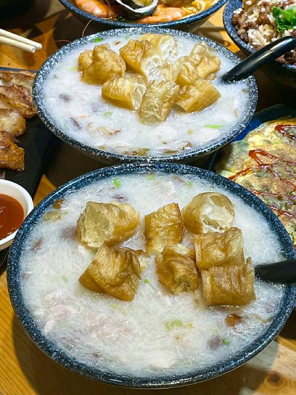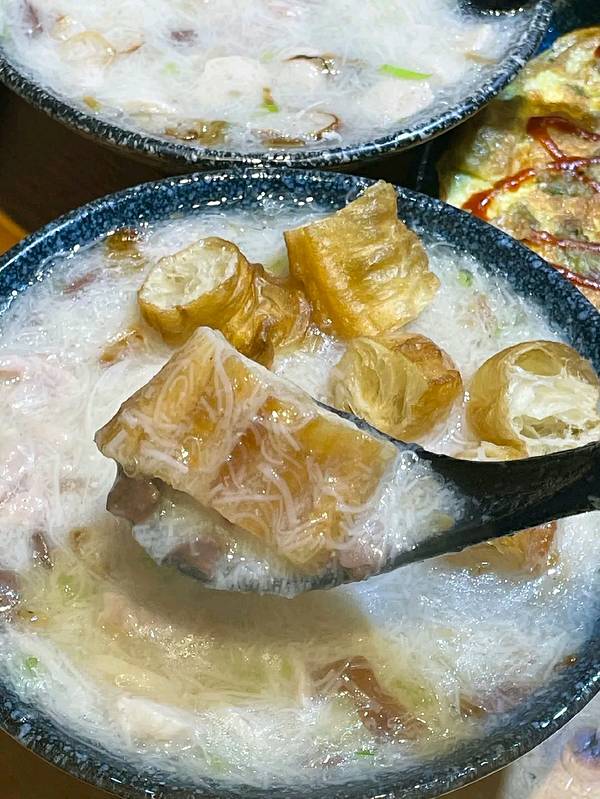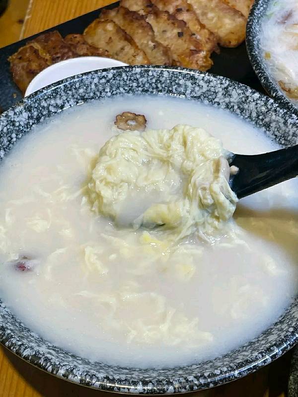 ...一起吃的2道菜品,一口面线糊一口油条,味道不错喲~ |手工熬制花生汤^一份甜汤里面还有鸡蛋花哦