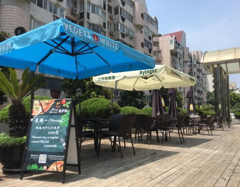餐厅在水城南路上星巴克咖啡的对面,从家里走过去5分钟,有时候周末没事会去那边喝一杯,人比星巴克少有露天的位置,阳光灿烂的时候喝一杯,聊聊天很惬意。