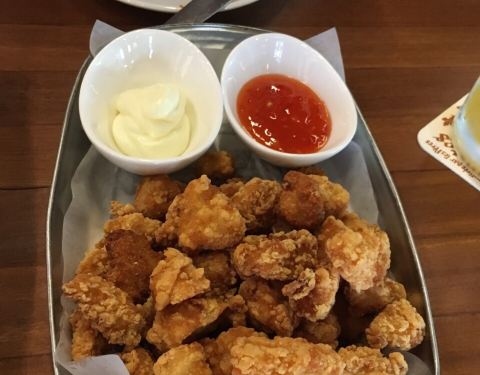 有幸又被大众点评霸王餐砸中,昨天中午去尝试了一下,11:00开始营业,中午很少客人,毕竟这里是酒吧,224元的套餐:鲜啤超爽;玛格丽特披萨现烤出炉,边皮带脆,中间芝士丰富,拉出长长的丝;滚烫的炸土豆条像是没有经过加工的那种,就是直接用土豆炸的,香,配上目鱼汁酱和茄汁,推荐木鱼汁,好吃;最好吃的是那盘又大又香又脆的鸡米花,是真真的外脆里嫩,超赞;服务也很好,我们二个人都没有吃完这份套餐,打包带走,服务员看见后主动问了要不要给一份酱打包回去,说明服务到位,环境也不错,酒吧气氛浓郁,虽然霸王餐只能是白天吃,但是能感觉到晚上这里的热闹场面,附近又是老外集聚地,加之现在的世界杯,一定是人气爆棚,很嗨的!