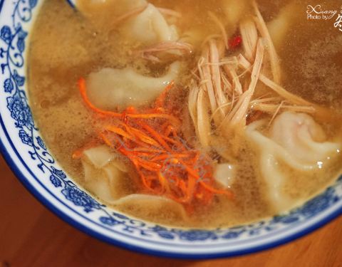 对于抄手,其实我个人还是很喜欢的啦!这家店真的是种草很久了,要不是因为距离原因,早就过来拔草啦!! [环境]小店就在李家沱的附近,不过从地铁站下来还是有一定的距离。骑个自行车,还是很方便的啦!小店很有情调,面积不大,一看就是老字号哦! 「海味抄手」当然要吃点养生的,清淡的啦!个人觉得抄手不错,汤底也很鲜美的哦! 「干拌抄手」这有点超出我的预料,稍微有点辣,哈哈哈哈。不过不得不说口感真的很不错,味道很出色! 「竹笙牛肝菌鲜虾蟹籽抄手」招牌主打的抄手,每一个真的有点大!里面有一个大虾虾哦!肉质很棒,汤的味道也很好喝,值得一试啊!!