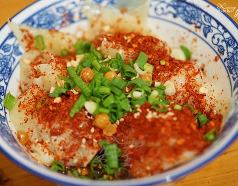 干拌的口味让我稍微有些失望,因为干辣椒面有些不太入味,如果能够加一道工序,淋一点明油的话,辣...