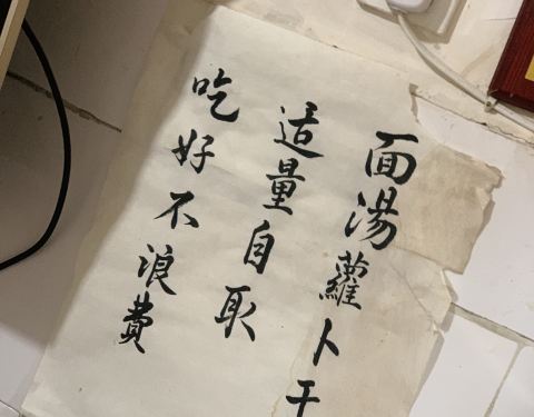 位于李家沱附近的一家抄手店 可以说走到巷口就已经能够感受到这家店人气很旺 [环境] 居民楼一楼,门口点餐 为了方便点餐,做了一些菜单放在收银台 也用了毛笔字写了一个大菜单放于墙上 细节很贴心。萝卜干,糖蒜...