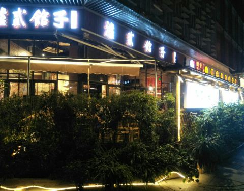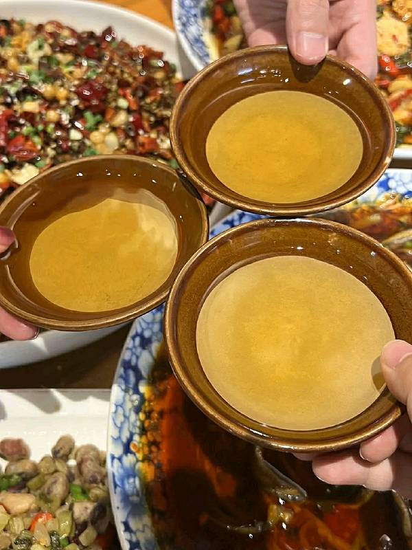 从来都是听说过江湖菜,昨天晚上就去吃了一回正宗的泸州江湖菜。从馆子的外面看就很有江湖的感觉,桌子椅子都是木头的,每张桌子上还有个吊灯,挺有趣的。2、3楼是雅间、包间,但我觉得坐在外面吃饭更有江湖气息。每份菜都是用大盘装的,有种大碗吃肉大碗喝酒的豪爽感。江湖菜,味道要重些,虽然看起来有很多海椒、大姜那些,但吃起来不是特别辣,反而很开胃。乌鱼片很嫩、火爆花甲也很新鲜,吃起来没有沙很干净。烧烤牛五花烤了后太香了,我一口气都能吃10串[呲牙]。推荐下店家的花酒,各种鲜花、水果制作的花酒,很适合女性喝,能美容养颜。
