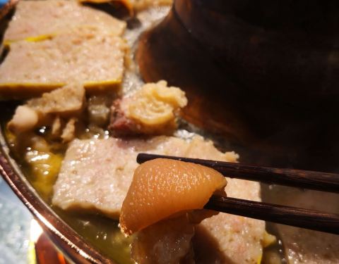 ...就是来吃土火锅没有想到,点的另外一道菜给了我们惊喜,那就是【泡笋子烧鲜脊髓】58,真的好好吃啊