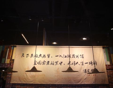 从来都是听说过江湖菜,昨天晚上就去吃了一回正宗的泸州江湖菜。从馆子的外面看就很有江湖的感觉,桌子椅子都是木头的,每张桌子上还有个吊灯,挺有趣的。2、3楼是雅间、包间,但我觉得坐在外面吃饭更有江湖气息...