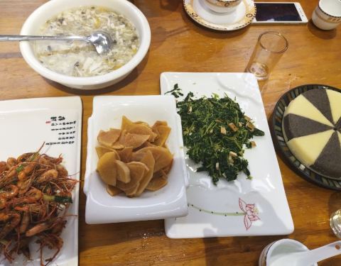 环境挺好的,味道也挺不错,小米糕是真的好吃,然后豆腐羹也很不错,适合清淡的口味,我们是八点多来的因为避开了高峰期所以上菜很快,最最重要的是服务很好!!!因为田螺那道菜不知道点了微辣的,结果吃了几个...
