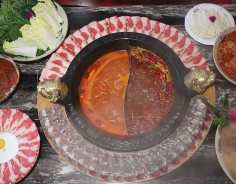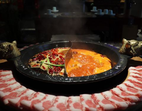 位于龙眠大道地铁一号口三楼,位置特别好找交通也特别方便。 环境:大红灯笼高高挂~有点喜气洋洋的赶脚[偷,店里干净卫生整洁,每一桌都还有手写的温馨提示语。 |番茄锅底^|牛油锅底^因为有不吃辣的朋友(ღ˘⌣˘ღ),所以选择了鸳鸯锅,番茄🍅还是第一次吃,味道不错😊,牛油是它们家的特色每次必点~里面还有诱人的牛骨还是带肉的哦。 |一米鸭肠^和毛肚一样,七上八下就OK了,特别的爽脆、每桌必点[调皮][调皮]。 |特色冰粉^火锅解辣的标配😊,里面的配料也足味道还不错呦。 |聪明脑花^四川人的最爱,粉粉嫩嫩的~入口即化。(一定要吃麻辣味哦) |黄龙川粉^Q弹有劲 |豆芽^锅底提鲜菜品 |外婆酥肉^味道一般般中的一般般,没有以前好吃了,点了一份基本没有动~可惜😔。 |肥牛^火锅必备菜品~肉食动物的最爱 |平菇^|草原千层肚^ 服务: 服务不错喲,回应及时周到,清理桌面也及时,店里还提供不少小食和水果。
