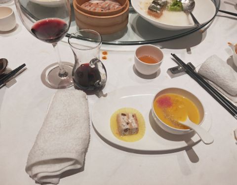 隔了一周带上长辈再来龙码头,上次吃过的点心和黑松露波士顿龙虾炒饭照样上来,又多叫了不少品种。那个XO酱虾仁带子极受欢迎,长辈的冰花炖燕窝吃的异常满意,赠送的餐前小吃芝麻胡桃也很爽口,倒是炸俩肠粉有些普通,那个金银皮蛋瘦肉粥可能时间放了长了一些,等我吃的时候口感已经不算很好了。这里座位宽敞,桌面也够大,不会有任何拥挤的感觉。卫生间有自动感应门,也是比较少见的。结账可以用招商银行掌上生活,满500减50。停车店方会让你直接扫码抵扣两小时,余下的微信直接支付,不必跑到保利时光里的服务台换停车券了。不过大螃蟹还没机会吃上,留待今后吧