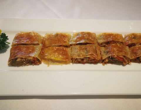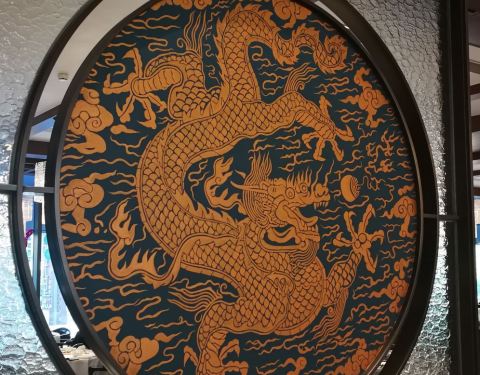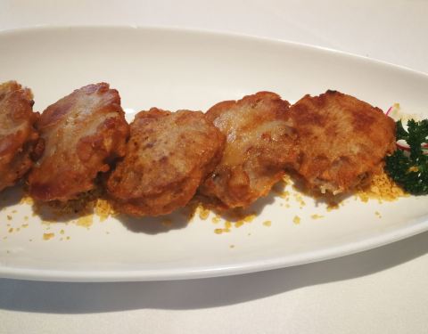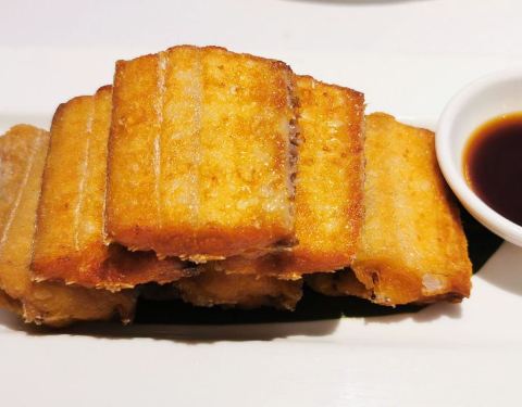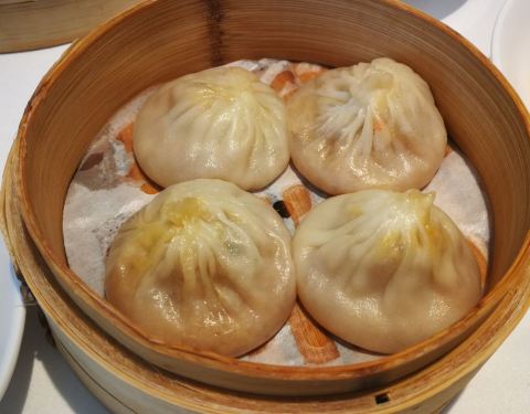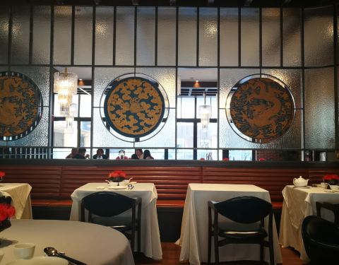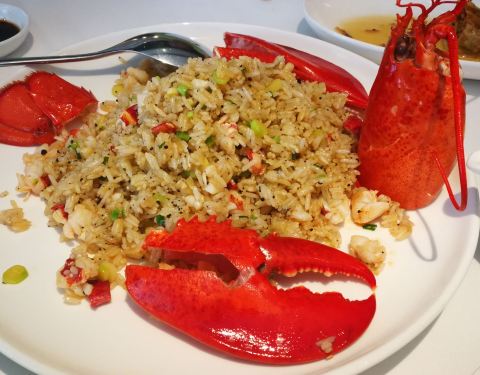 这家龙码头在保利时光里是开张的比较晚的,曾经过几次,觉得餐厅位置好,外观气势不凡,特别是夜景。知道是吃大螃蟹的,人少没法去,就一直拖下来,直到最近小家伙下午在附近考试,晚上还有课,要赶个时间提早晚餐,就决定到这里来了。电话预订,得知早上11点开门后就不休息连续营业到晚上,那最好了。果然下午4点半过来就有不少客人在,里面的装潢倒没有什么特别出彩的,不是很上照。菜的选择很多,看上去挺吸引人,价格也不菲。服务生和蔼可亲,反映敏捷,令人舒适。点了几个点心,一份好贵的黑松露波士顿龙虾炒饭,味道好极了