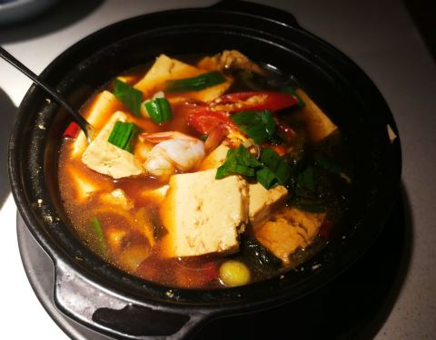 [环境] 亲橙里的这家外婆家在三楼,从地下车库上来可以电梯直达。店面很好找,看哪人气最旺就行了。 快五点半到,小桌前面已经有七八桌在等位。大门进去之后便是一个环状的大巴台,边上是等位区,还放了小桌子,感觉都可以茶歇了。 餐厅的装饰用了三种颜色:绿色、橙色、白色。镜面的天花板,让空间看起来更炫酷。白色的网状隔板,和阿里办公楼屋檐的那些如出一辙。 【菜品】 好长一段时间没吃外婆家了,就点些家常菜回味回味。 |好吃的花菜^外婆家有好几道“好吃的……”系列,这个有机花菜一直挺喜欢的。和五花肉一起炒的,非常香,口感又棒,被我们吃光光了。 |外婆小炒^最近特别想吃这个菜。那天点新开元的外卖,还要了这个菜,可惜没做出我要的味道。外婆家的这道小炒,充分煸炒出了韭黄和豆干的香气,色泽也更为诱人。就是口味有一丢丢不易察觉的甜。 |外婆炖豆腐^砂锅炖的豆腐,热乎乎,香喷喷。外婆好大气,豆腐里居然还有两只大虾和好多片肉肉。豆腐煮的很入味,里面疏松的孔隙已经吸满了鲜美的汤汁,一口一块很过瘾,不过小心烫。配料里的洋葱也很好吃。 |美味猪手^最后上来的菜。黄豆炖猪蹄,真是大补蛋白!猪蹄一共有五六块,炖的非常酥烂。要不是前面吃的太饱,我肯定还能多啃几块。满满的胶原蛋白,吃完都感觉粘牙了。 这一顿虽然没点什么大菜,但外婆家的家常菜依然是有滋有味,让人怀念,吃的挺满足的。