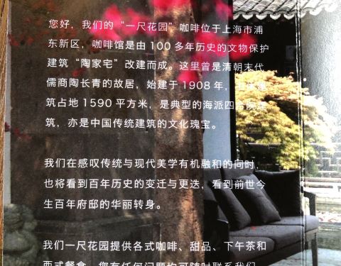 来到荣获浦东新区咖啡厅热门榜第一名的Coffee Garden一尺花园咖啡,环境幽雅宁静。在浦东新区王桥路999号陶家宅,这里古色古香,中西合璧,非常有特色。