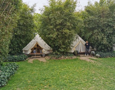 - ...宅院花园,草坪帐篷,鱼池沙地,小兄弟俩超级兴奋呐~喝个露天咖啡,今天蓝天白云真的很适合出来游玩