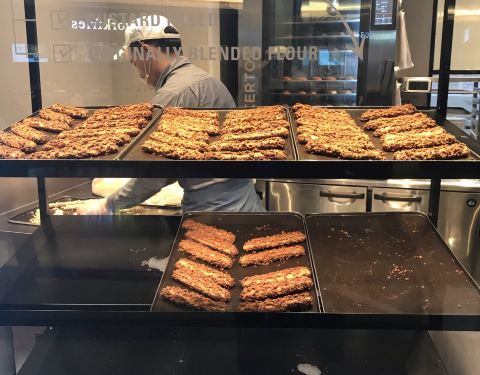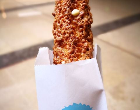日本的网红甜品店落户到太古里很长时间咯,据说是经常排队,于是我一直都没有去,这盘在太古里附近吃饭,突然想到这家 ,决定去试试。 橱窗是开放式的,在排队的时候能看到里面的工作流程,烤好的脆皮泡芙摆在烤盘上,颜色诱人,内场的地方不大,工作人员有6-7个,看样子生意不错,每个工作人员都戴着帽子,手套,口罩。有一个化了妆的类似主管的人让我感觉不太好,我很担心她脸上的粉会掉在我的泡芙上,貌似在安排什么工作,那一张烈焰红唇一直在我眼前晃动。呵呵。。。日本应该一向对管理规定很严格的嘛?化妆怎么可以进内场 买了泡芙,17元,外皮由扁桃仁、砂糖、蛋清混合烤制而成,入口的瞬间,最先感受到的是外皮的酥脆,紧接着是包含在里面的卡仕达酱的香滑, 网红店体验结束,有期望就有失望嘛,应该不会再来了。